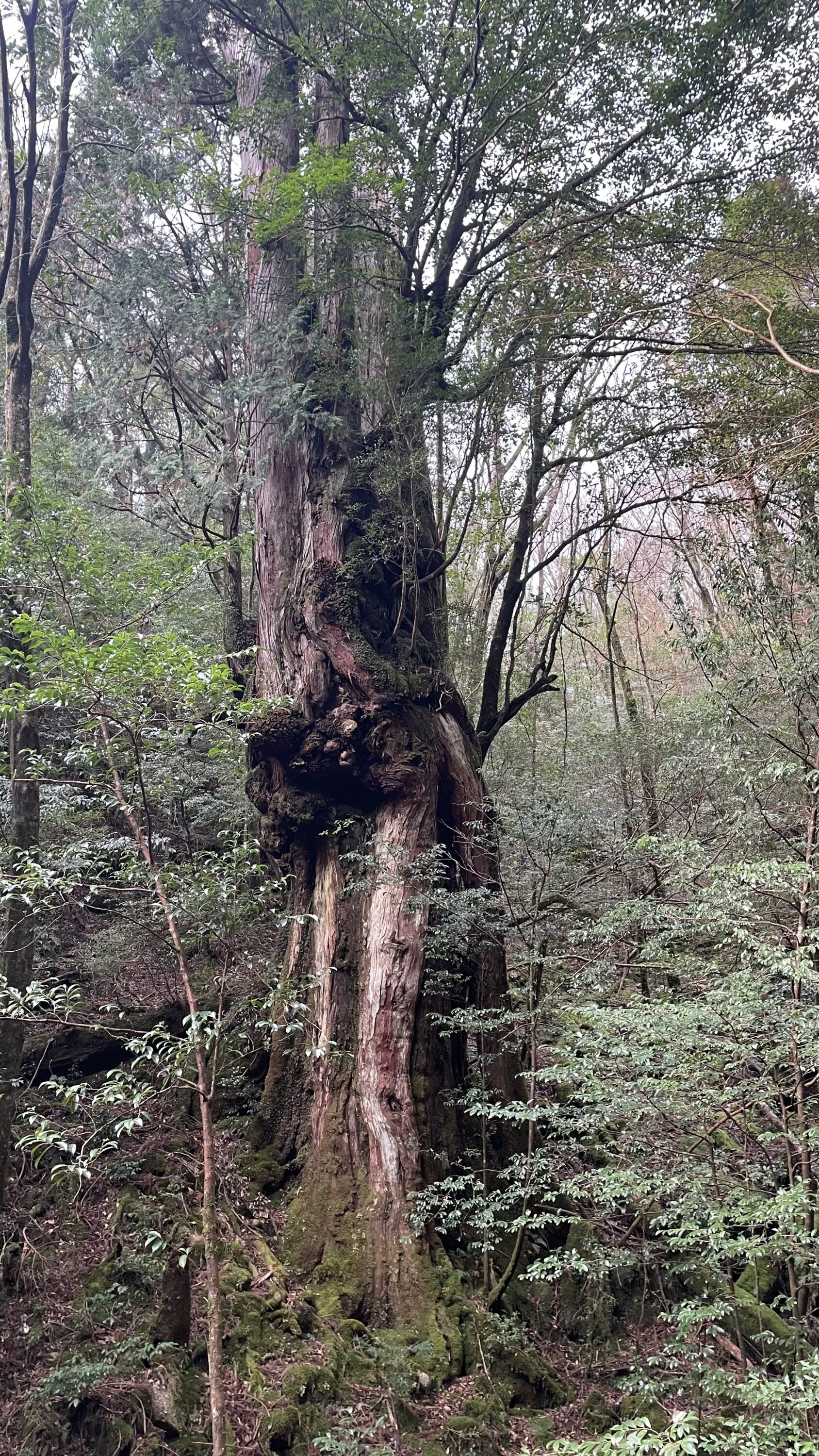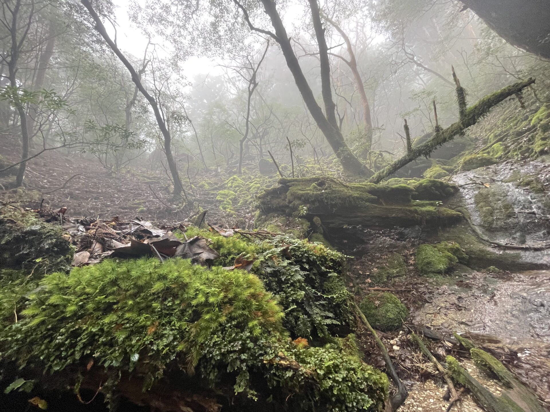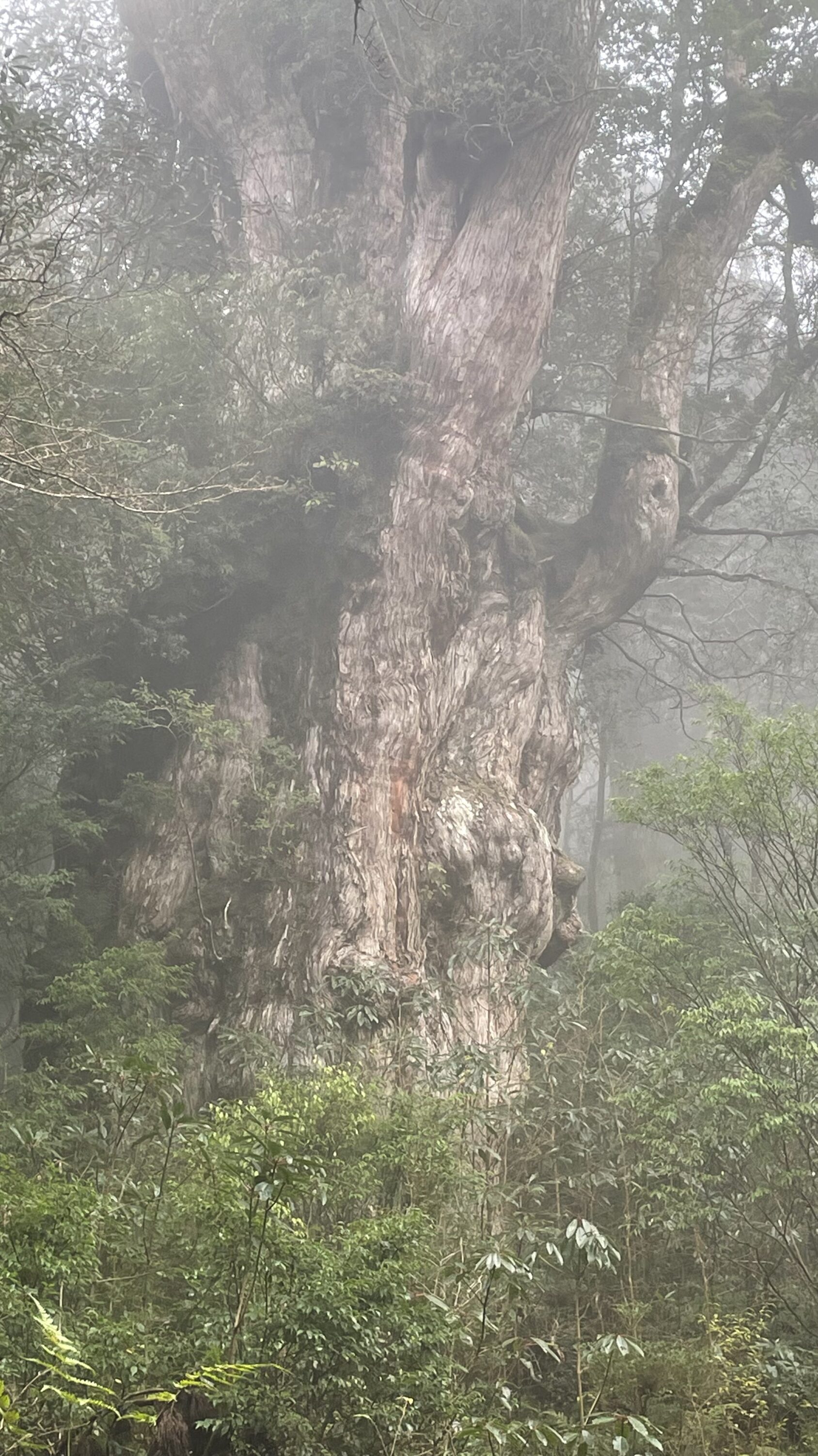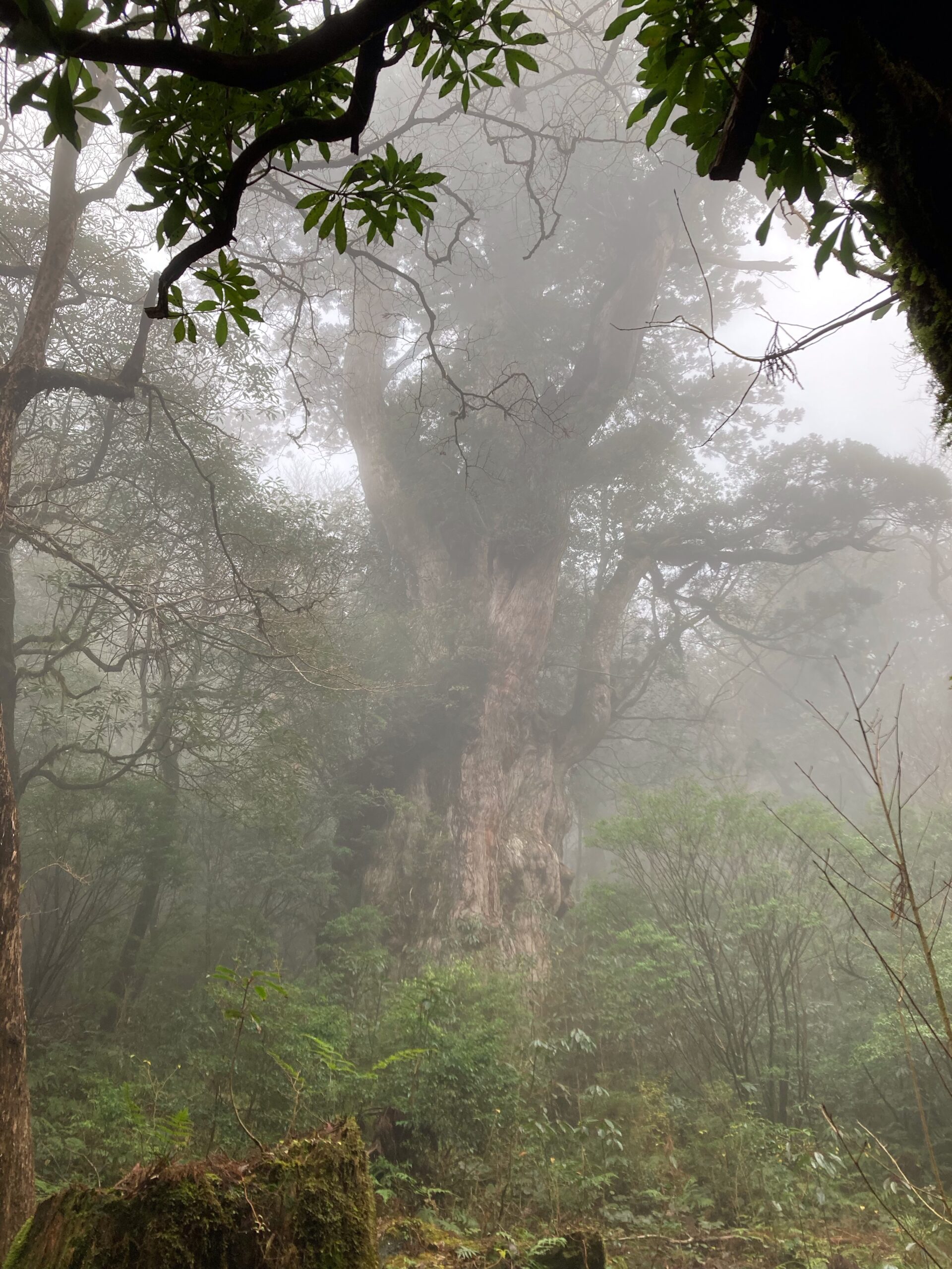 そしてついに辿り着いた縄文杉。縄文杉のエリアに到達したと同時にまわり中に霧がたちこめてラスボス的な雰囲気はバツグンだ。ちょうどこのエリアだけスマホの電波がつながったので親にLINEで「縄文杉着いたよ、オバケみたい」って送ったら「御神木やぞ」って怒られた。そりゃそうかw