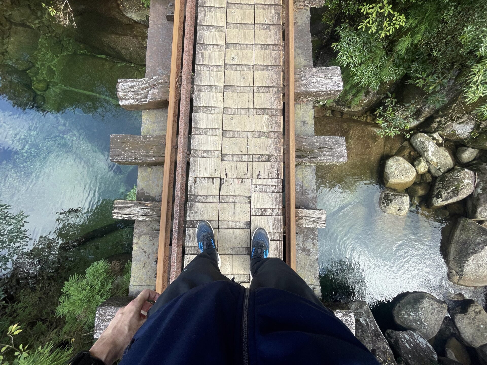 オフシーズンな上にスタートが遅れているのでだーーーーーーれもいない。不安な気持ちを押し殺しながらトロッコ道をひた走るオレたち。木々に囲まれているエリアがほとんどなので景色が開ける箇所はあまり無いけど、川を渡る橋が何箇所かかけられていてそのときだけ景色はやや開ける。