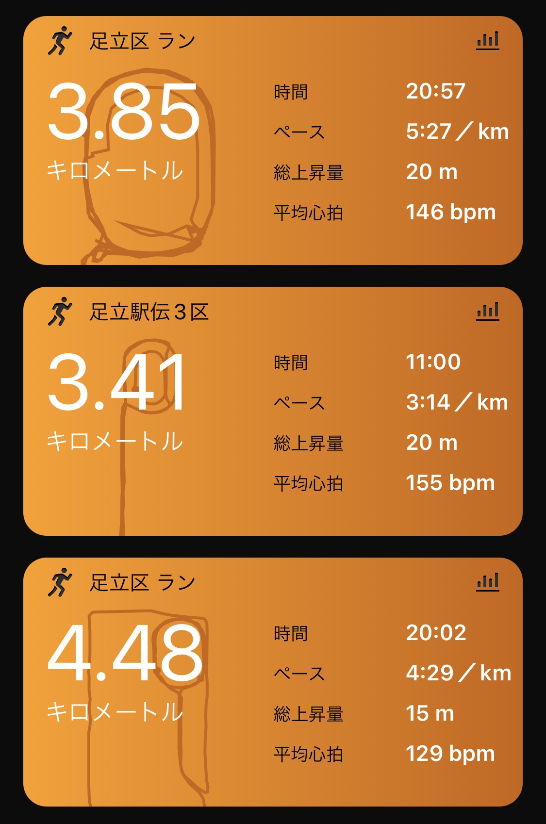 どれぐらいぶりかわからないぐらい久々に3000m(約)を走ったけど、この距離はもともと苦手なイメージがあって、5000mのスパート的な速さで押し続けなければいけないのとともに、1500mほど短くもない。