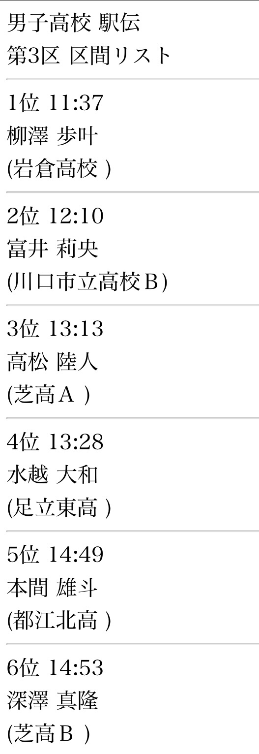 後ろから高校生が追ってくるのでひたすら逃げる。入りの1kmの表示は3’08だったがタスキもらう2秒前ぐらいに時計スタートさせてるので3’06ぐらい。