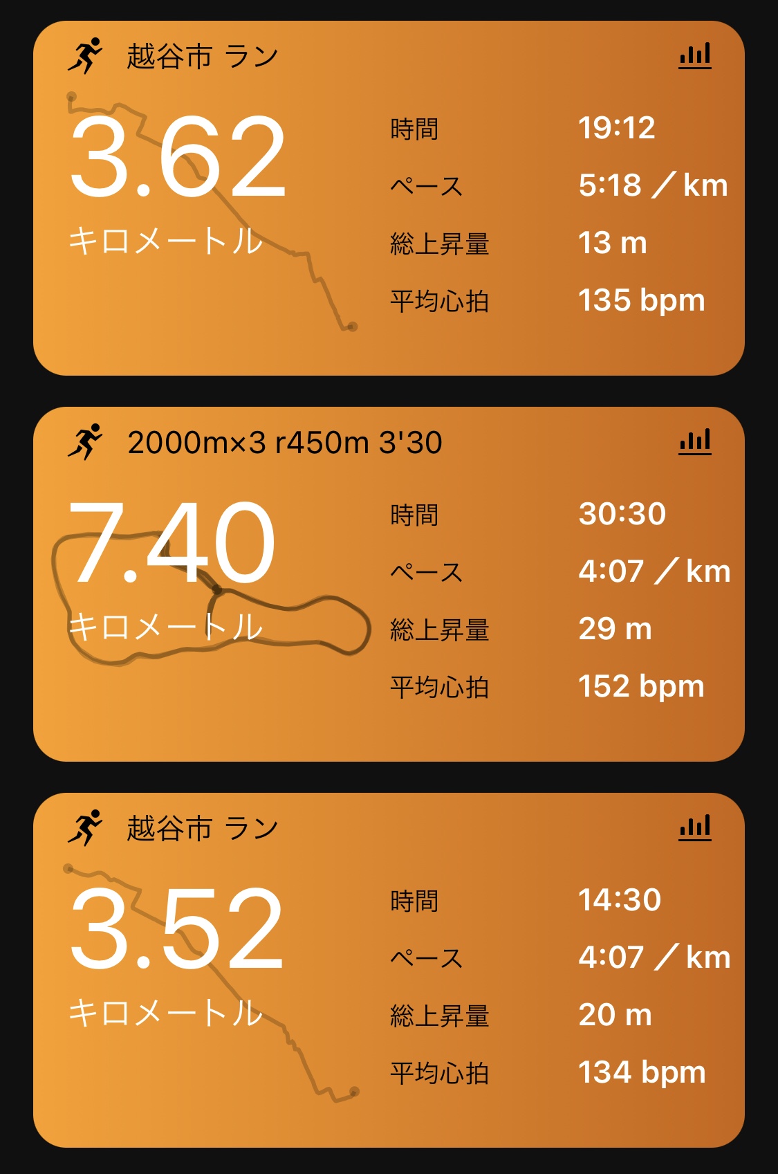 jogはできるけど3’20〜3’30/kmあたりのペースがとにかく弱くて1000mを越えると滅びるというのがここ最近の傾向である。