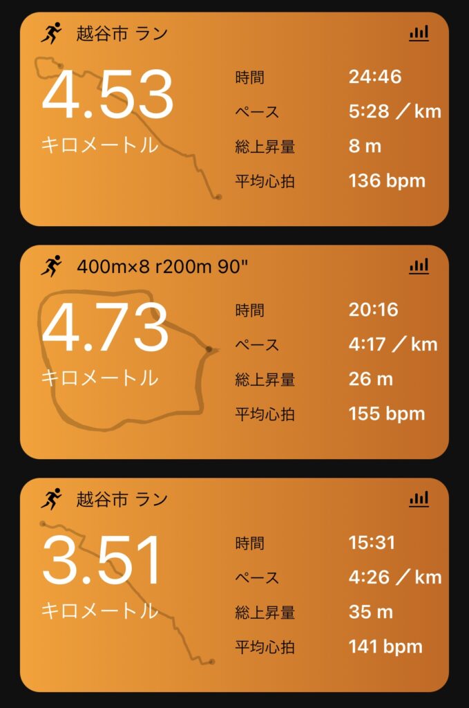 なんだかなーという感じではあるが、無理しない、無駄に追い込まない、レースペースに近いシゲキが入れられたのでヨシ!