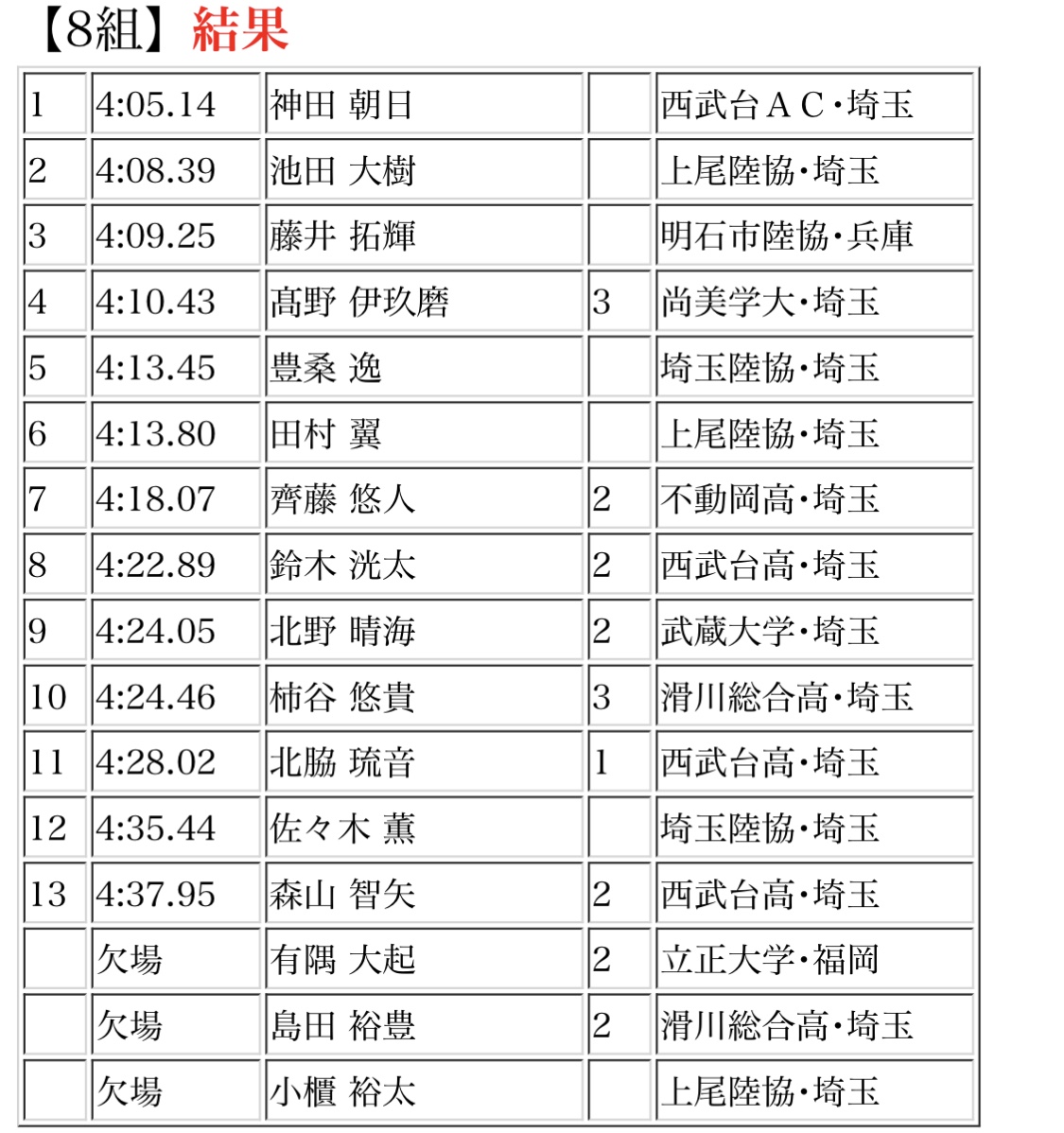 春の4’08で申請したところ最速と思われる最終8組になったんだけど、1つ前の7組で自分より速い人が7人いた。8組は俺も含めて盛り気味のタイム申請が多かったのか?w