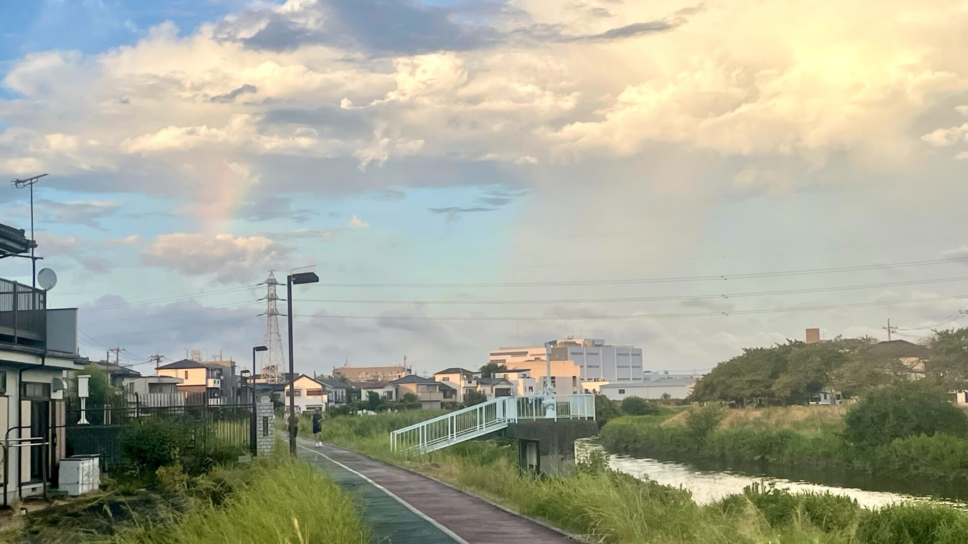 雨が降るって言われてた日に期待してjogしたのに全然降らないしクソ暑くてキレてたけどうっすら虹が見えた🥰🥰