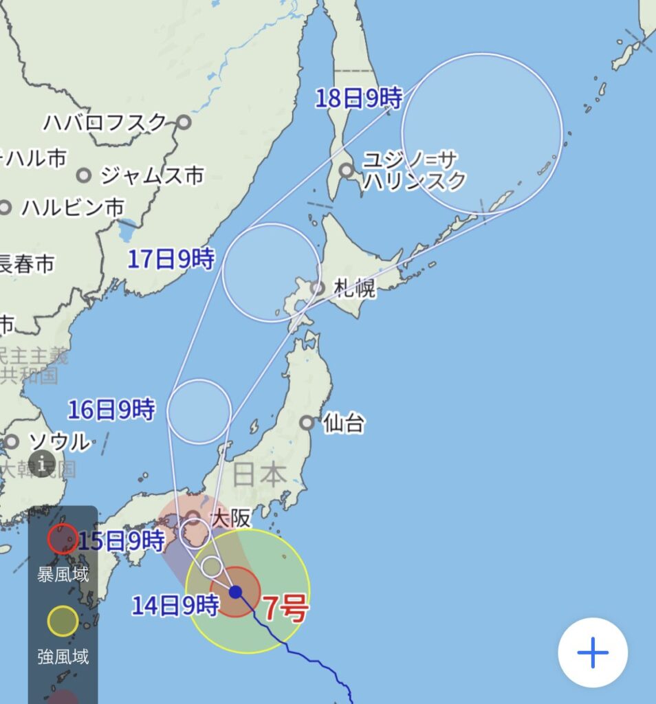 ↓こういう感じで台風が直撃コース(その頃には温帯低気圧らしいけど)を進んでおり、この日の午後~翌朝にかけて到達する予報。