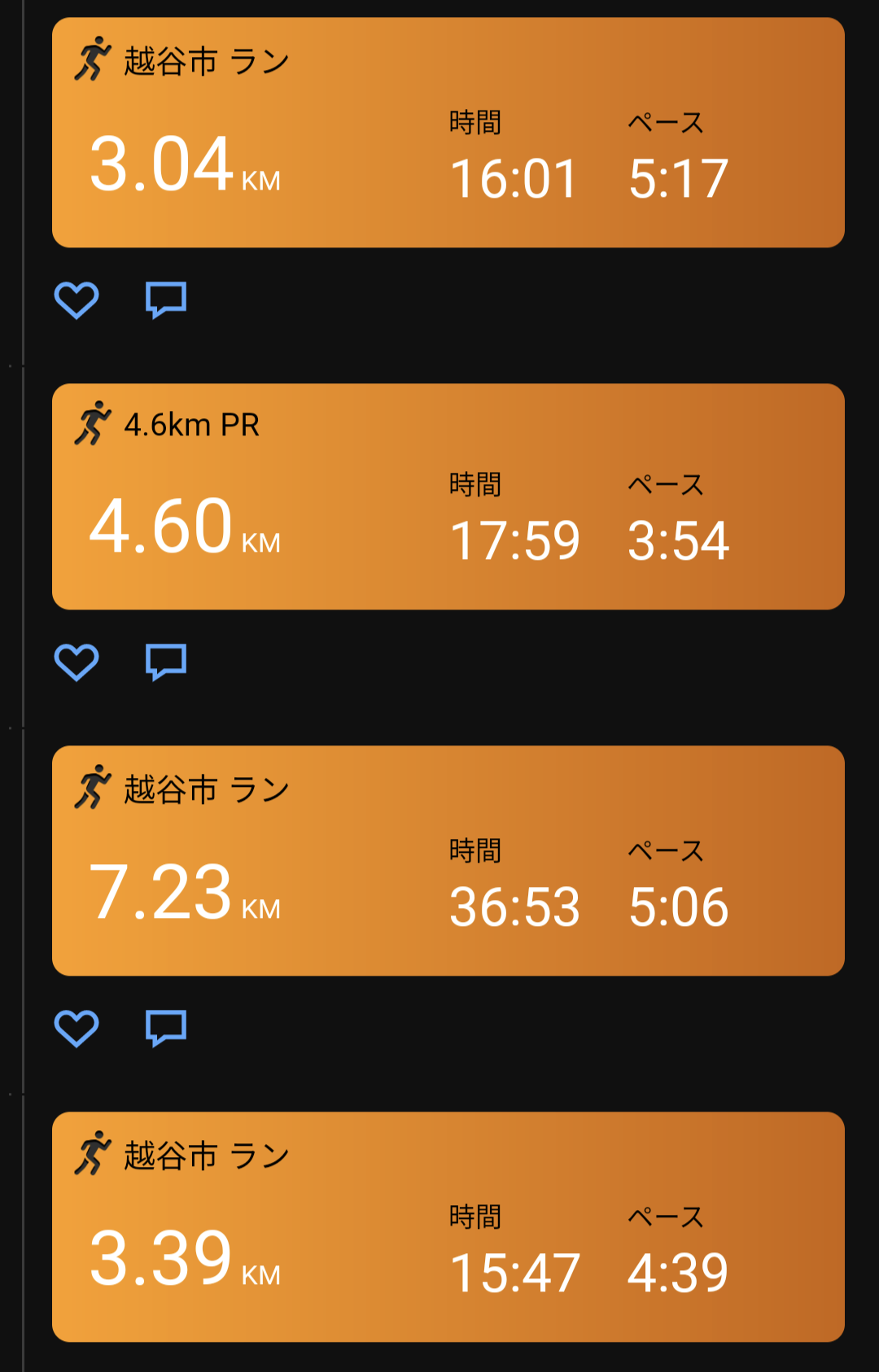 これから毎週土曜日はコバトン練習会なので週1回の高ボリューム練習が確定。その中で強度は自分なりに調整しつつやっていこうかなというところ。