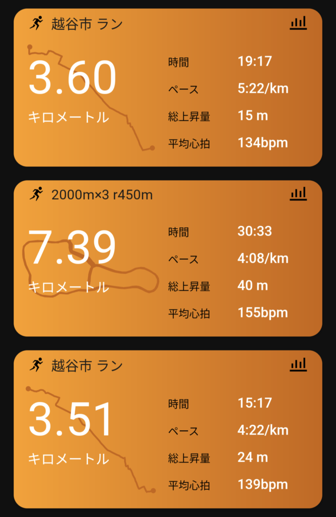 3本目は走っていて「あっ、楽しいな・・・?」みたいな感覚が得られたのでこれは大事にしていきたい。