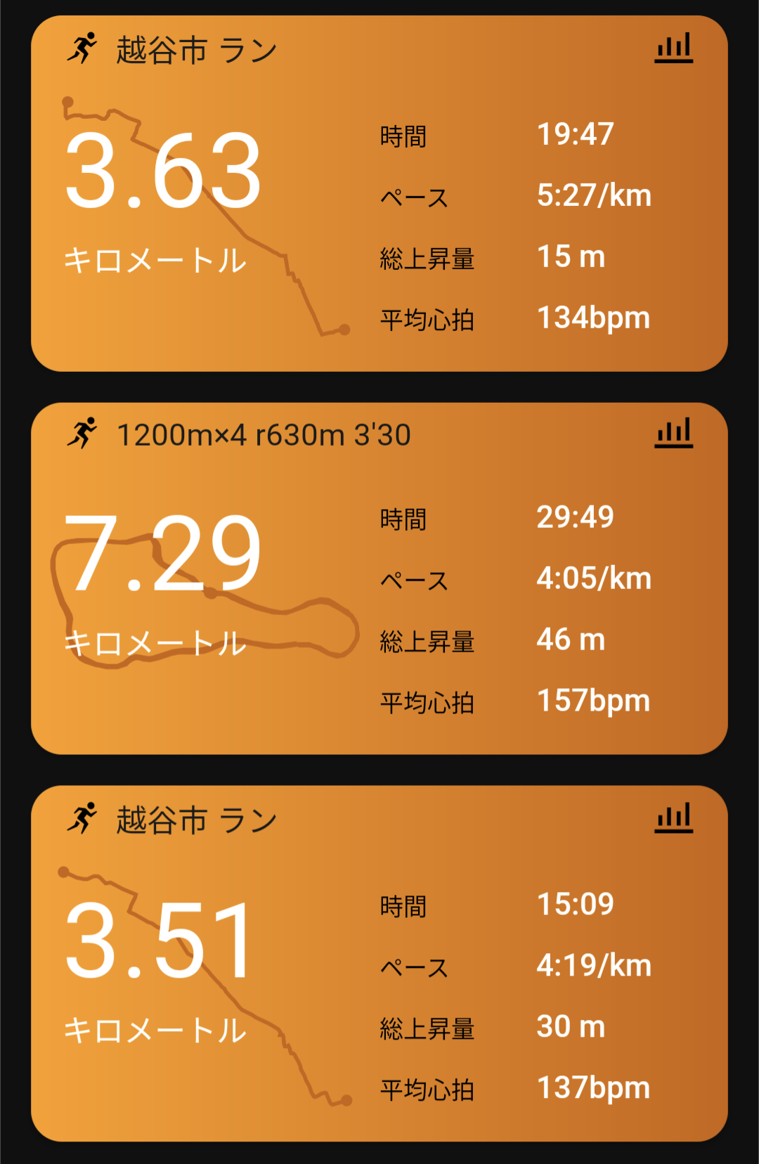 3本目からふくらはぎがピクピクきてたけどどうにかもった。遅くてもできなくても良いのでひたすら苦手メニューをやるのだ。