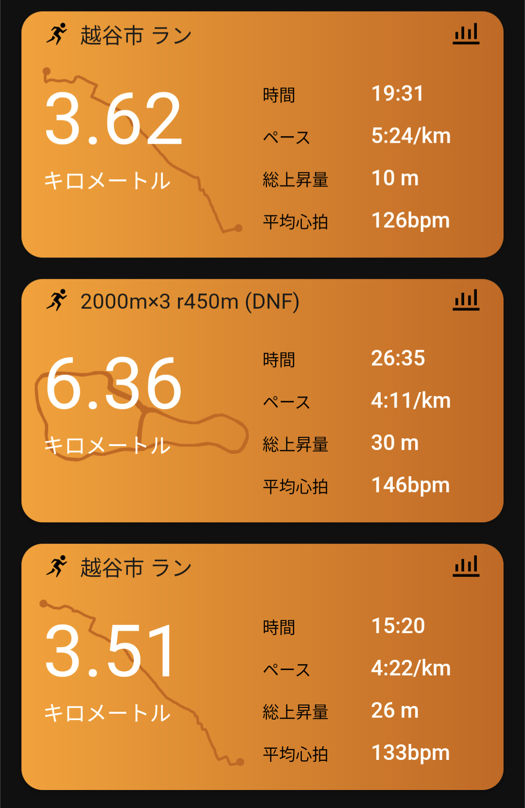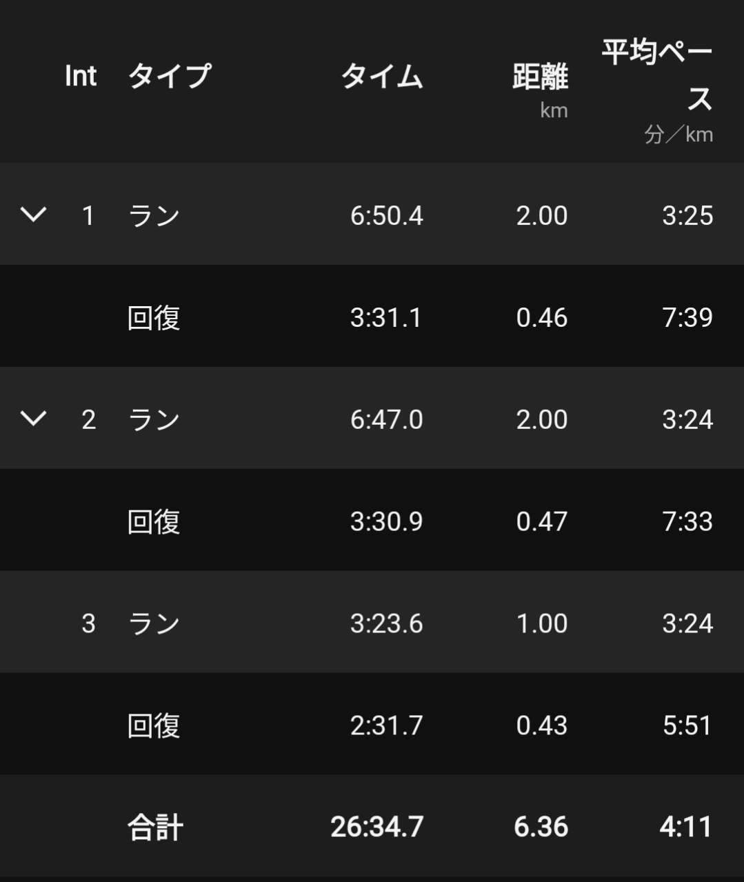このときはやけに走れて3本目も余裕を持って終えたけど、今日は対照的に1本目から余裕無し。
