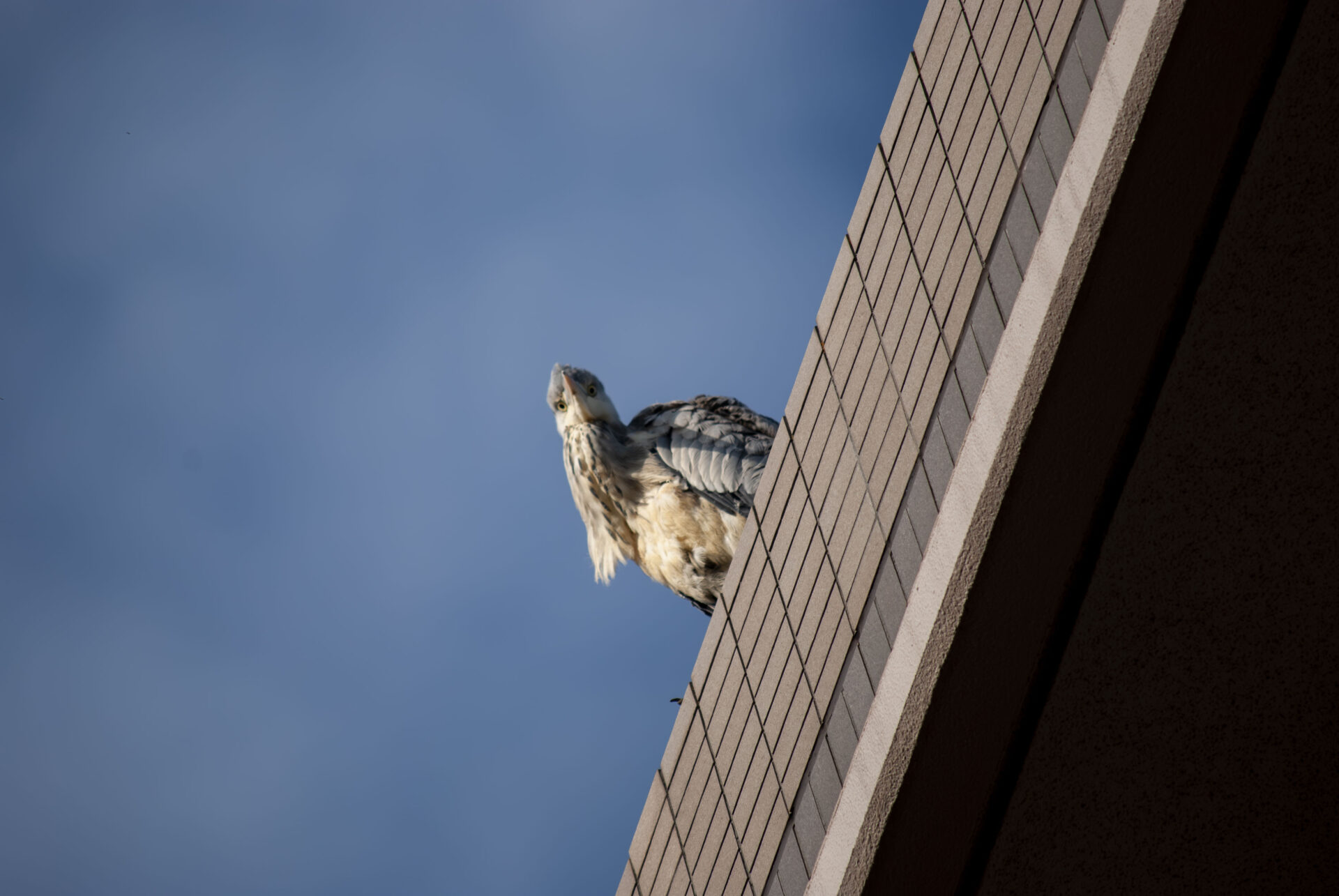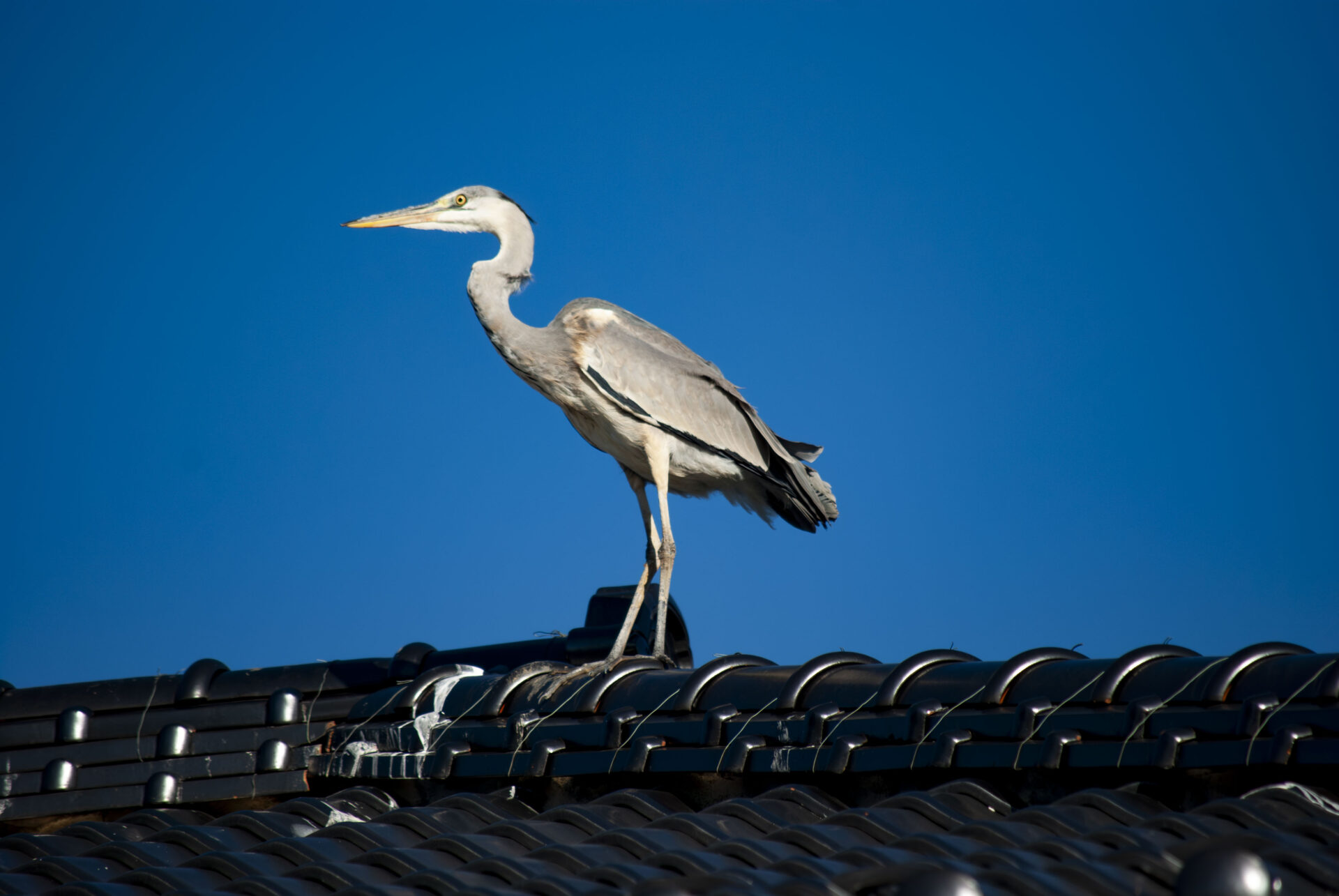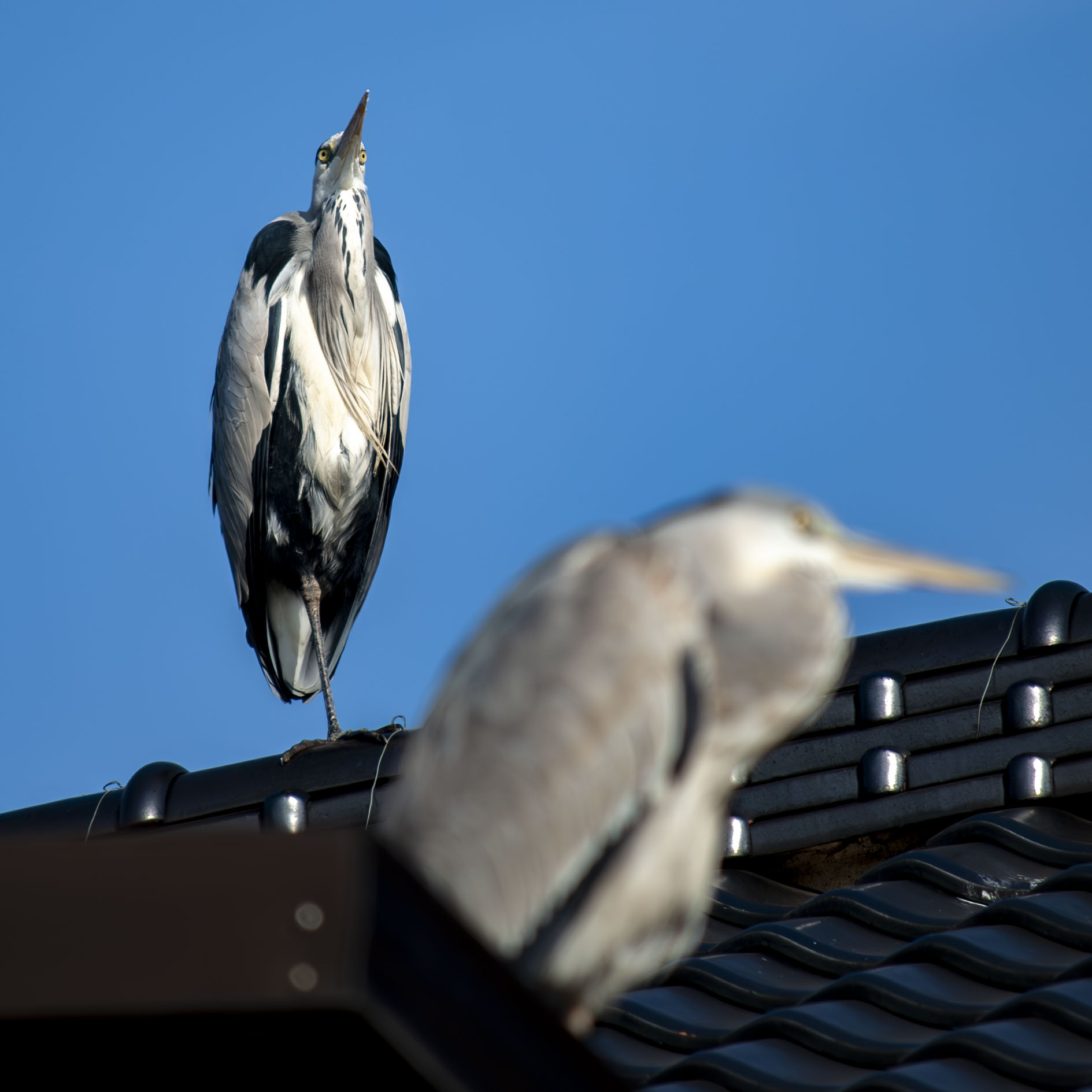 さて今日はいつもの家の屋根に3羽。手前にいるのがここ数日毎日のように会ってる若い子で、後ろに色の濃い範囲が広い子がドヤって中ボス感を出していた。