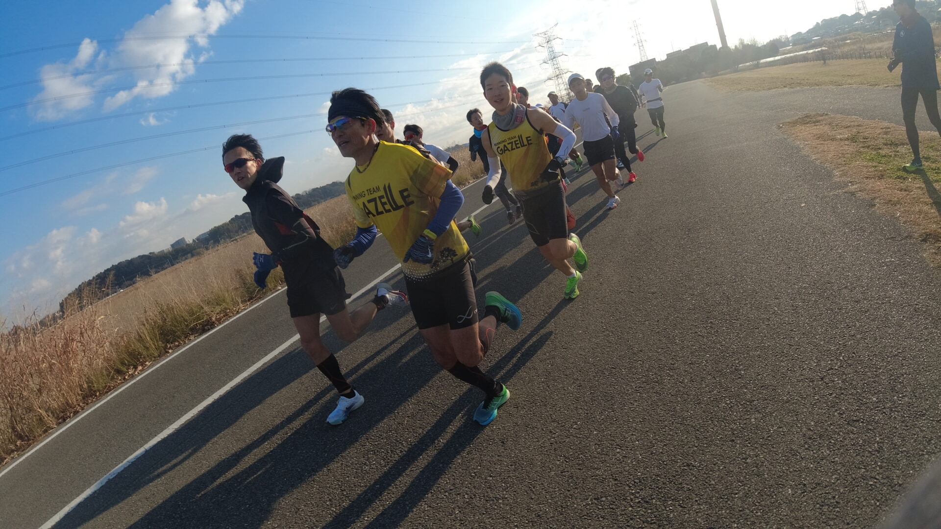 ほとんど全員レースシューズ履いてたけど妙なこだわりでズームフライ4で耐える。日差しが強くて気温もそこそこ上がり、だいぶ汗かいたし日焼けもして顔が痛かった。