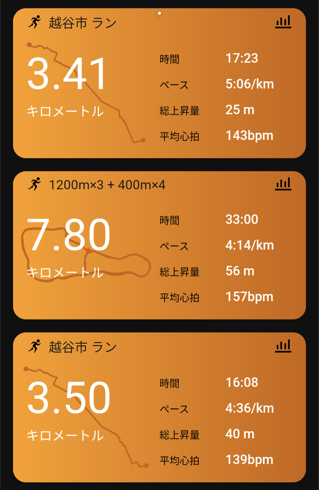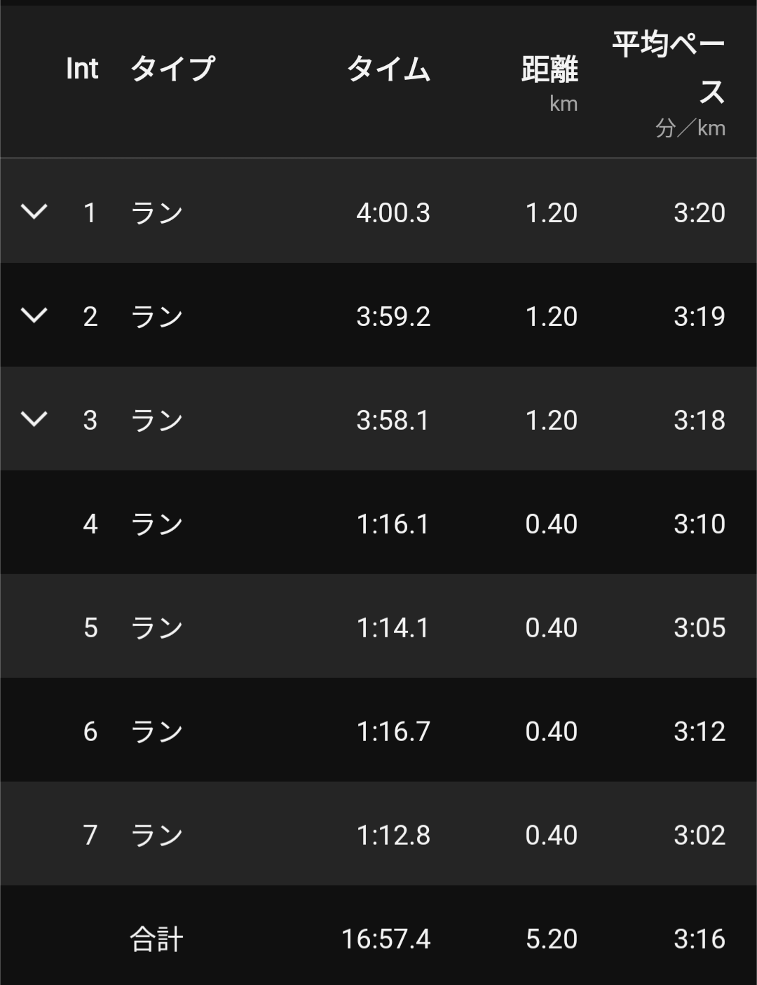 なので今回や他の日にやってる1200mも400m自動ラップで3回鳴るまで走る。