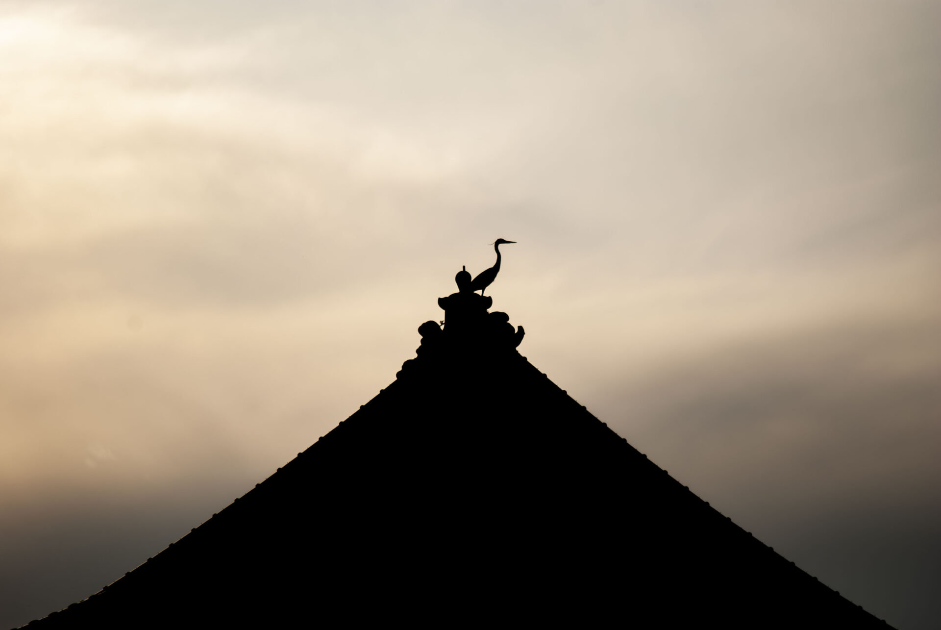 川沿いにお寺みたいな大きな家があるんだけど完全にシャチホコの代わりになってたw