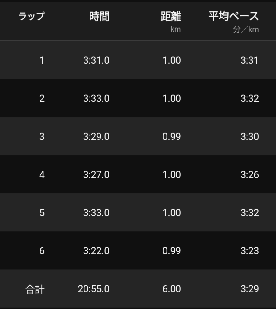 6kmちゃんとやれたのはどれぐらいぶりかわからない(初めてか?w)けど、たしかに3周過ぎてからの600mは実際やってみても長く感じた。