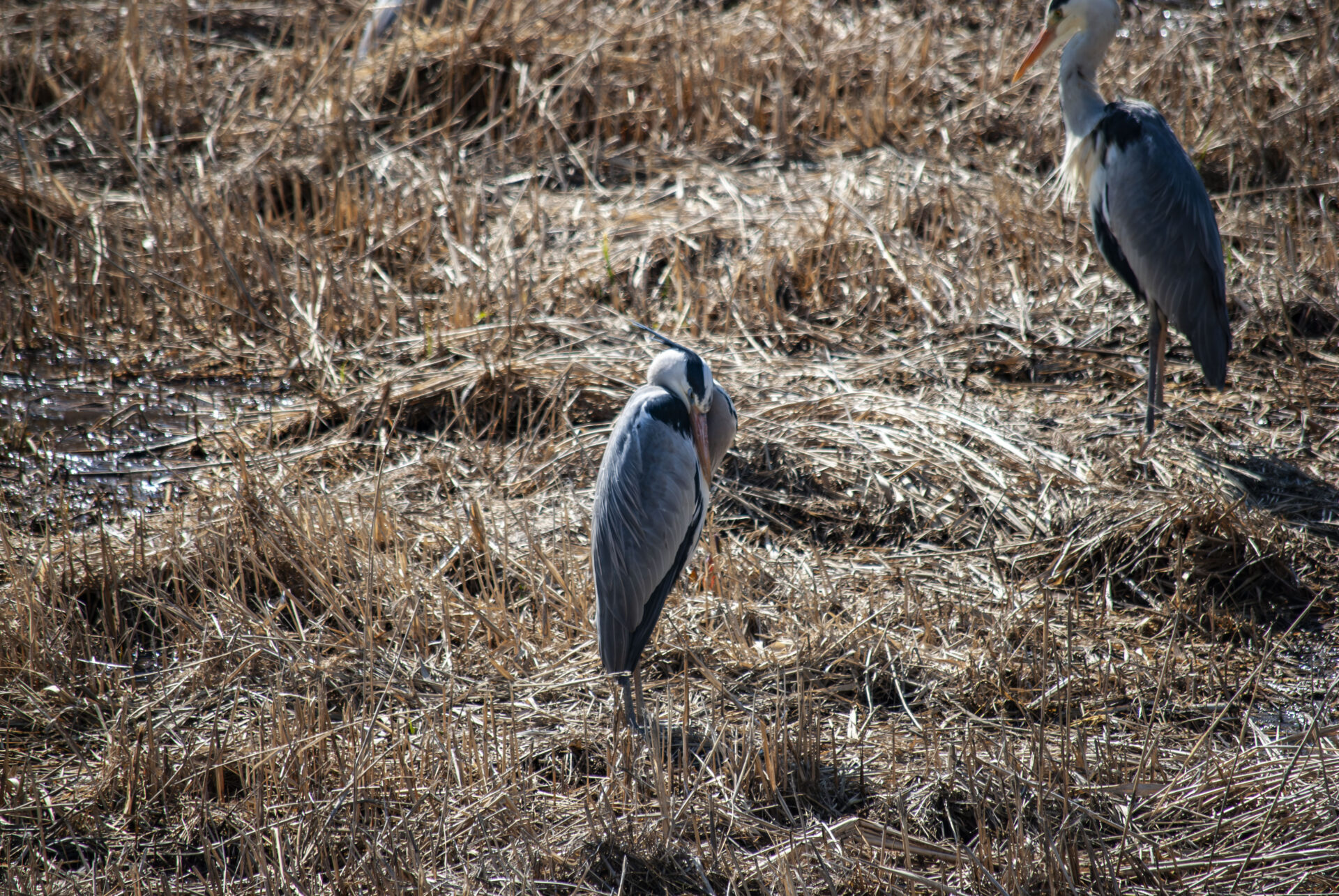 昼休みの調整池でアオサギ。めちゃくちゃ気持ち良さそうに寝てたw