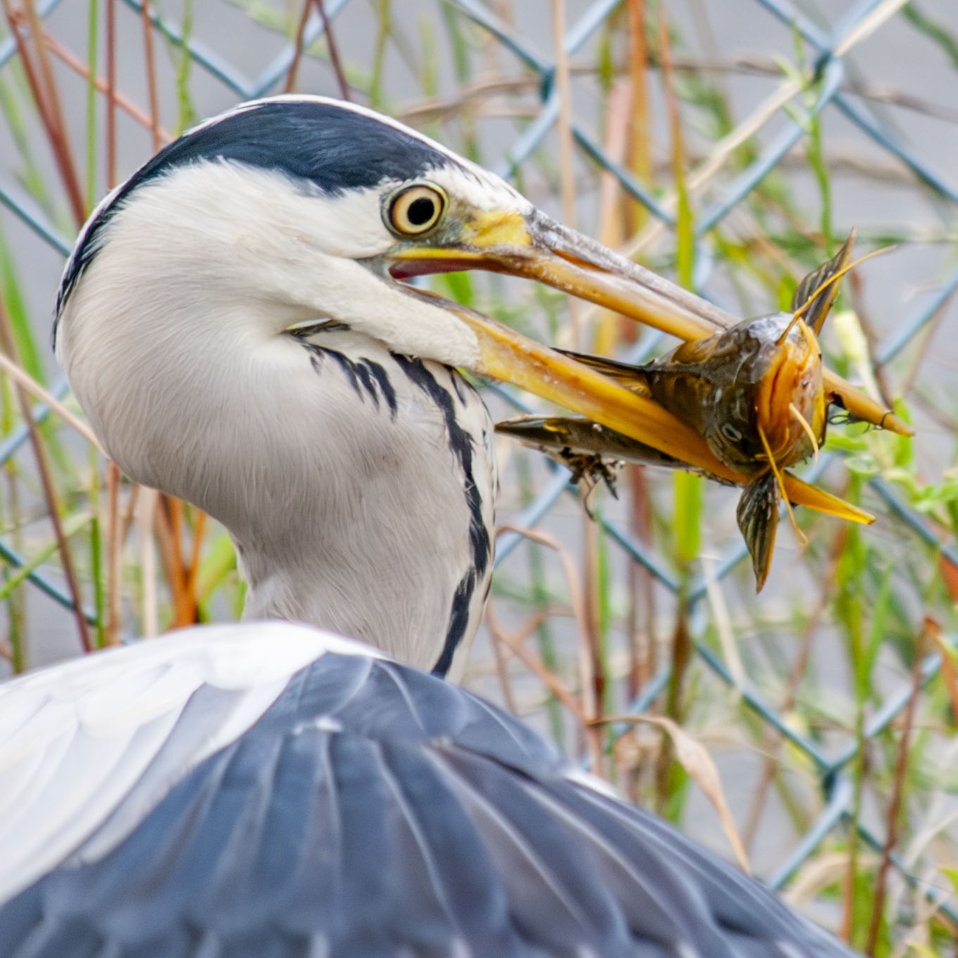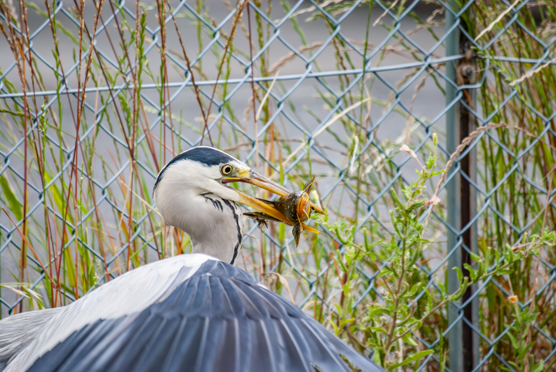 アオサギは体重が1.5~2kgぐらいしか無いらしい。ナマズがどんだけの重さなのかわからないけど100g以上はありそうよな…?