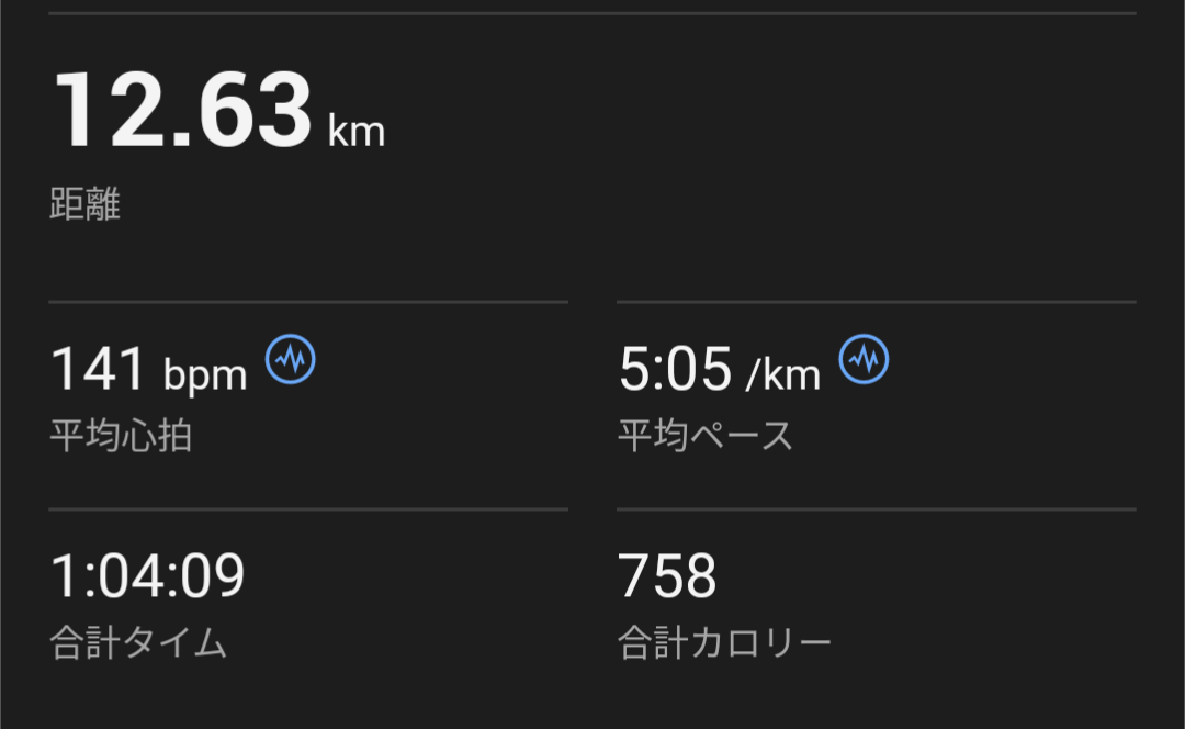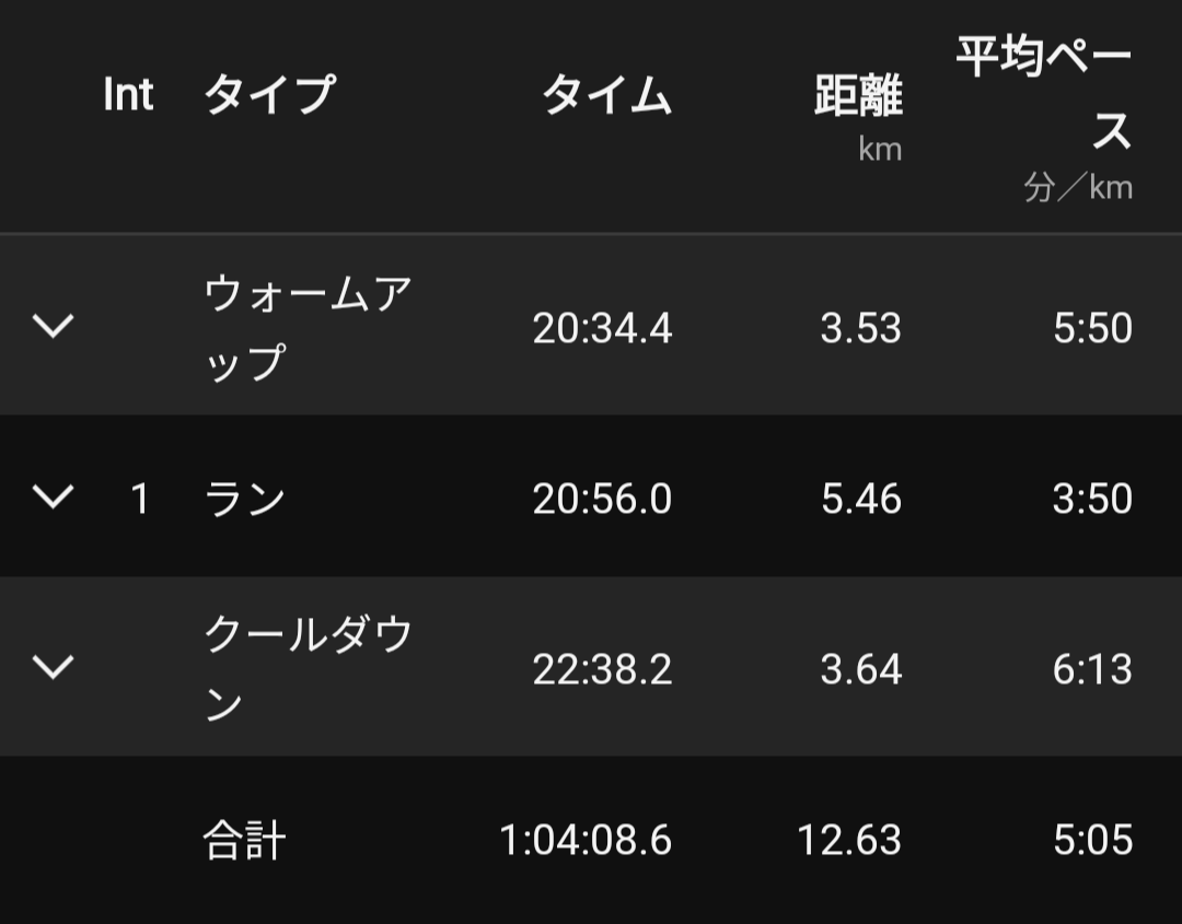 1ヶ月前は引っ張ってもらって3’55/km で2周半 4.6km。そのときはギリギリ余裕はあった感じだったけど、今回は2km以降でペースが落ちて余裕ナシの状態だった。