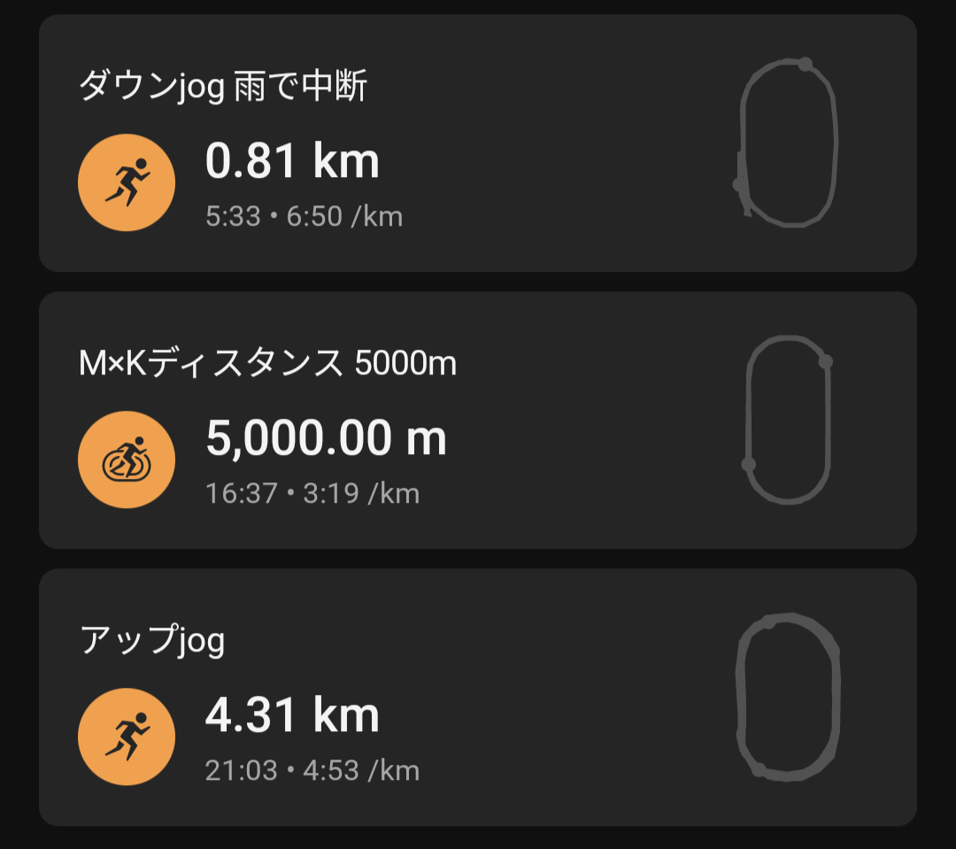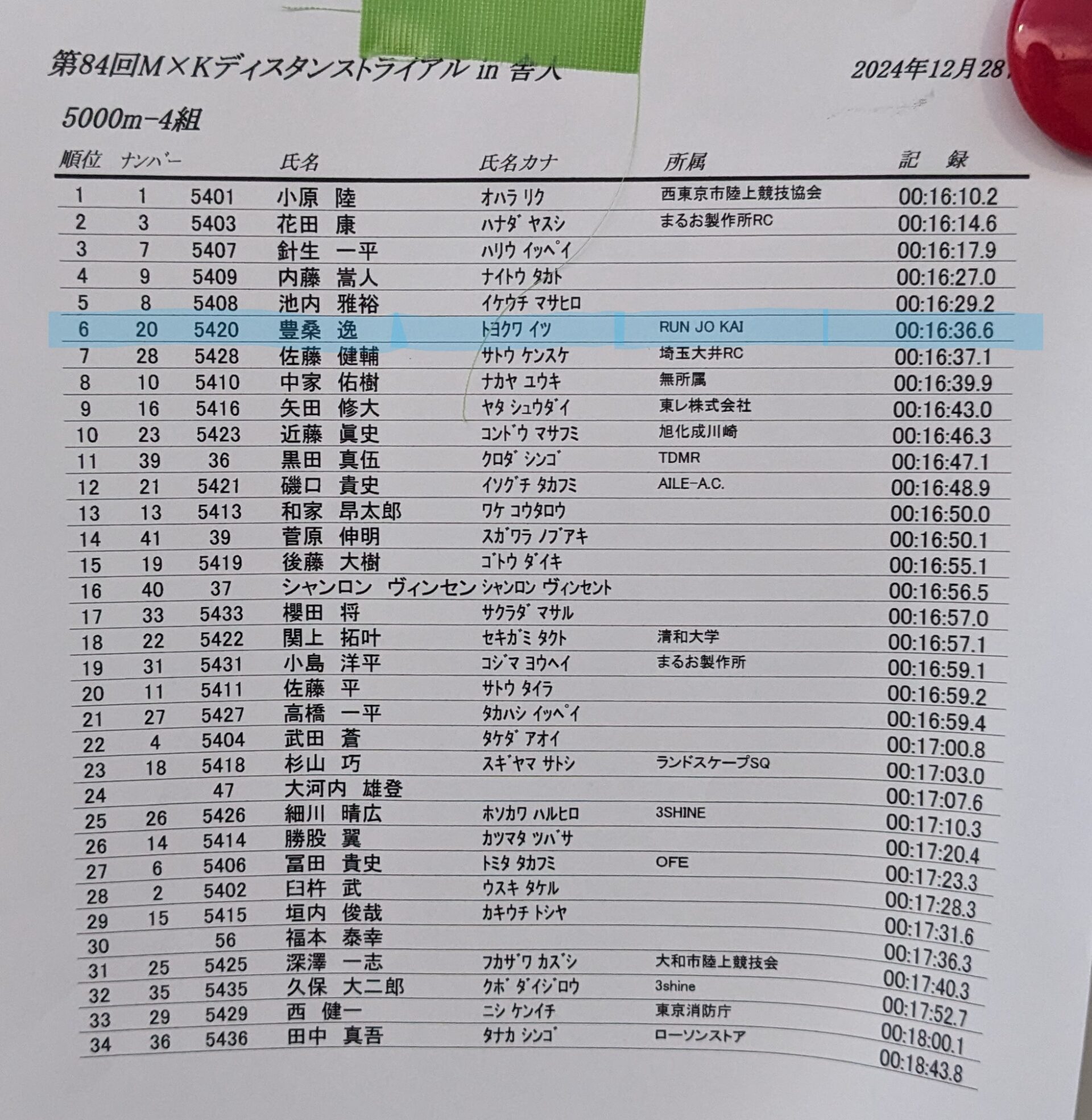 12/1の駅伝では3.6kmを単独走で3’20/km、今回はペーサー付きで距離を5kmまで伸ばせた。これまでの練習内容からは感覚的に16’50〜40前後だと見ていたけれど、やや上ブレ着地できて今は満足!