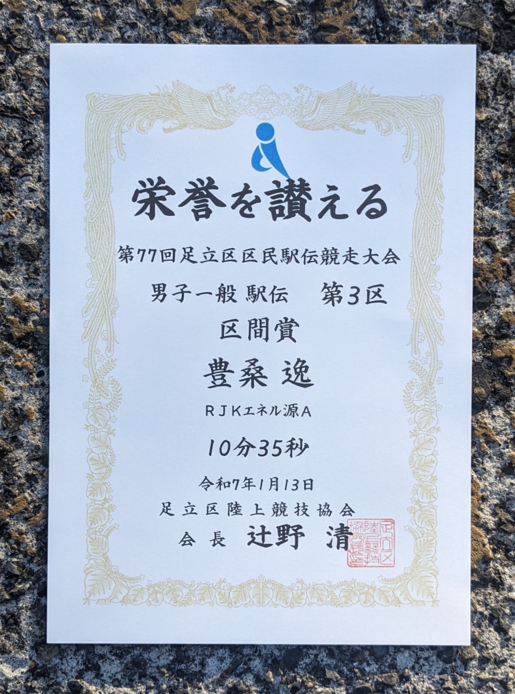 結果だけ見ればチームは優勝だし個人では区間賞ももらえてサイコーなのだが実は2位と11秒差のギリギリ優勝だった。