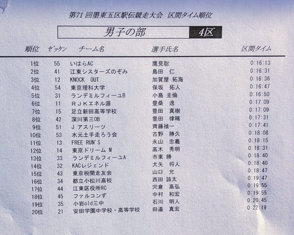 4区 5km 17’09💀 区間6位 チーム総合7位