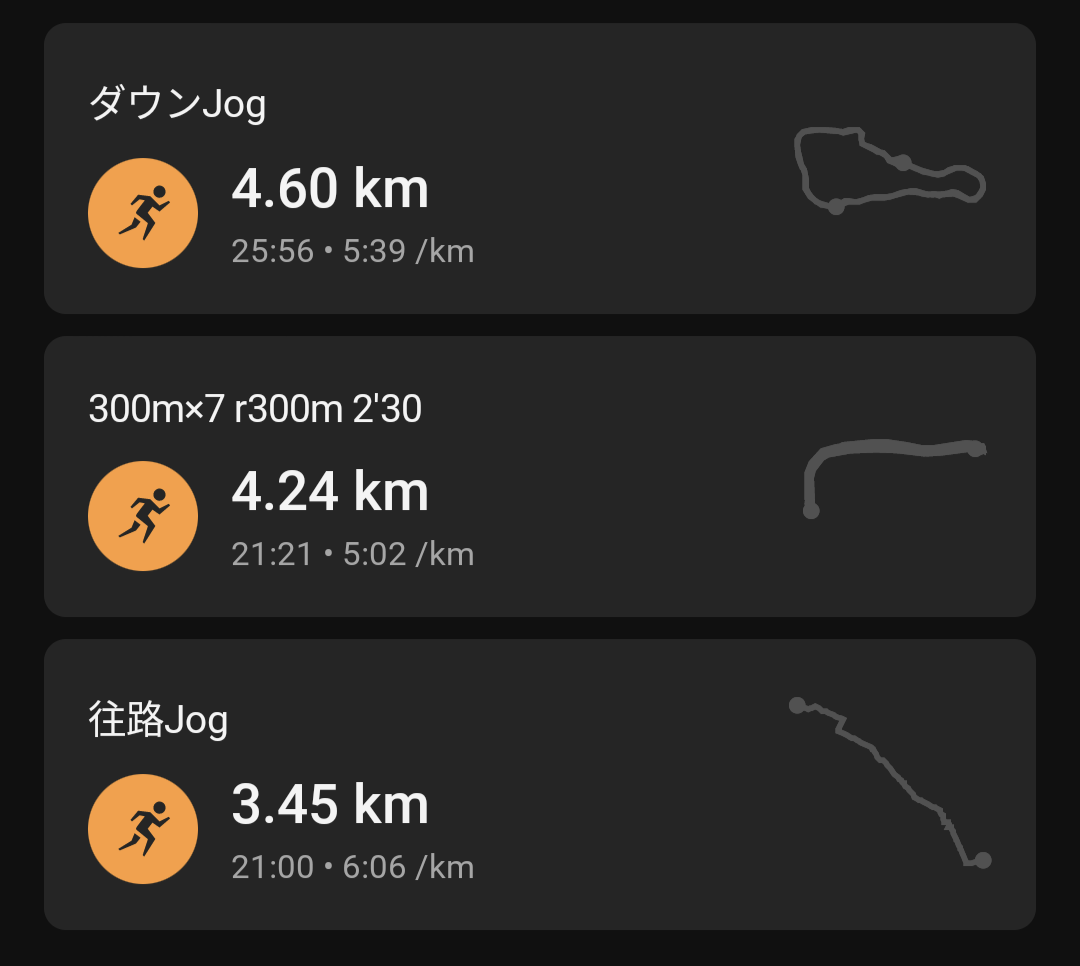 気持ちとしては明るい時間に走りたいのだけど、今の時期は早朝か日没後以降でないと暑すぎてロクな内容はできない。