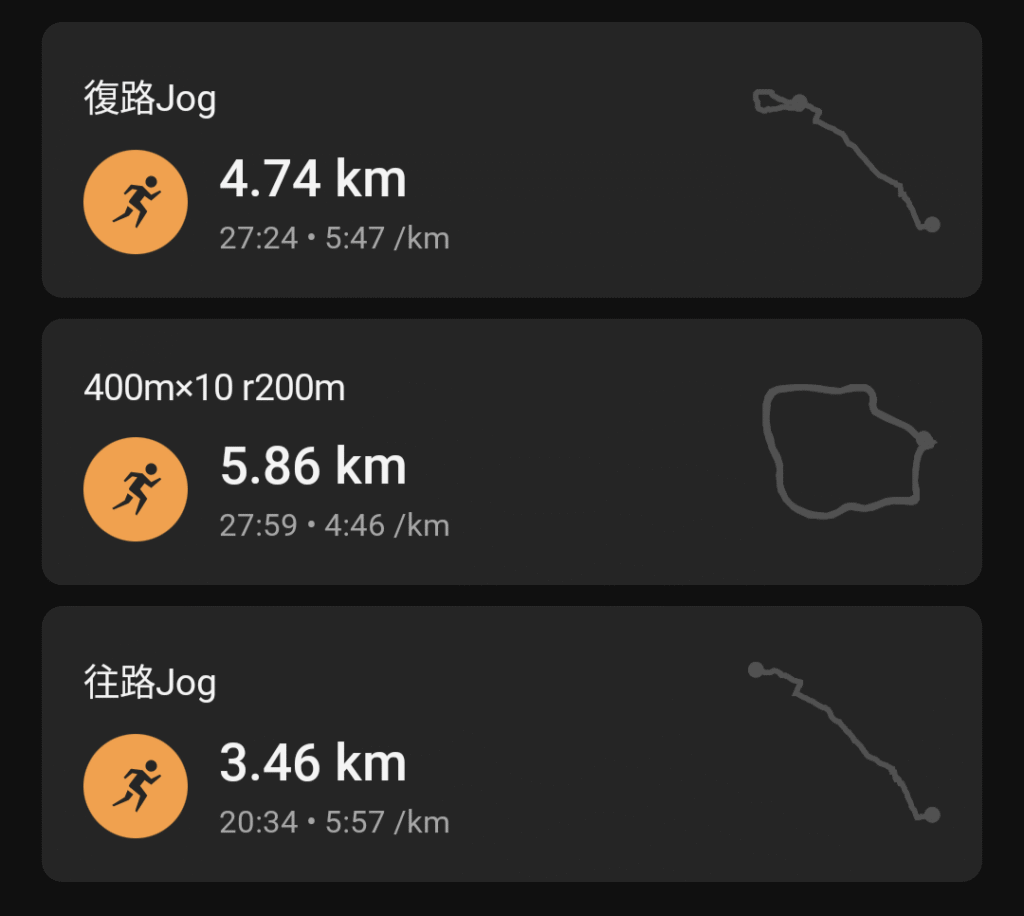 9/9~9/18の10日間のうち、発熱が3~4日であとは咳みたいな感じで休んでいたわけだが、9/19に走るのを再開して今日でまた10日。安全運転で10本と思ってたけど、80秒切るぐらいのスピードが想定以上にキツくて無理だった。