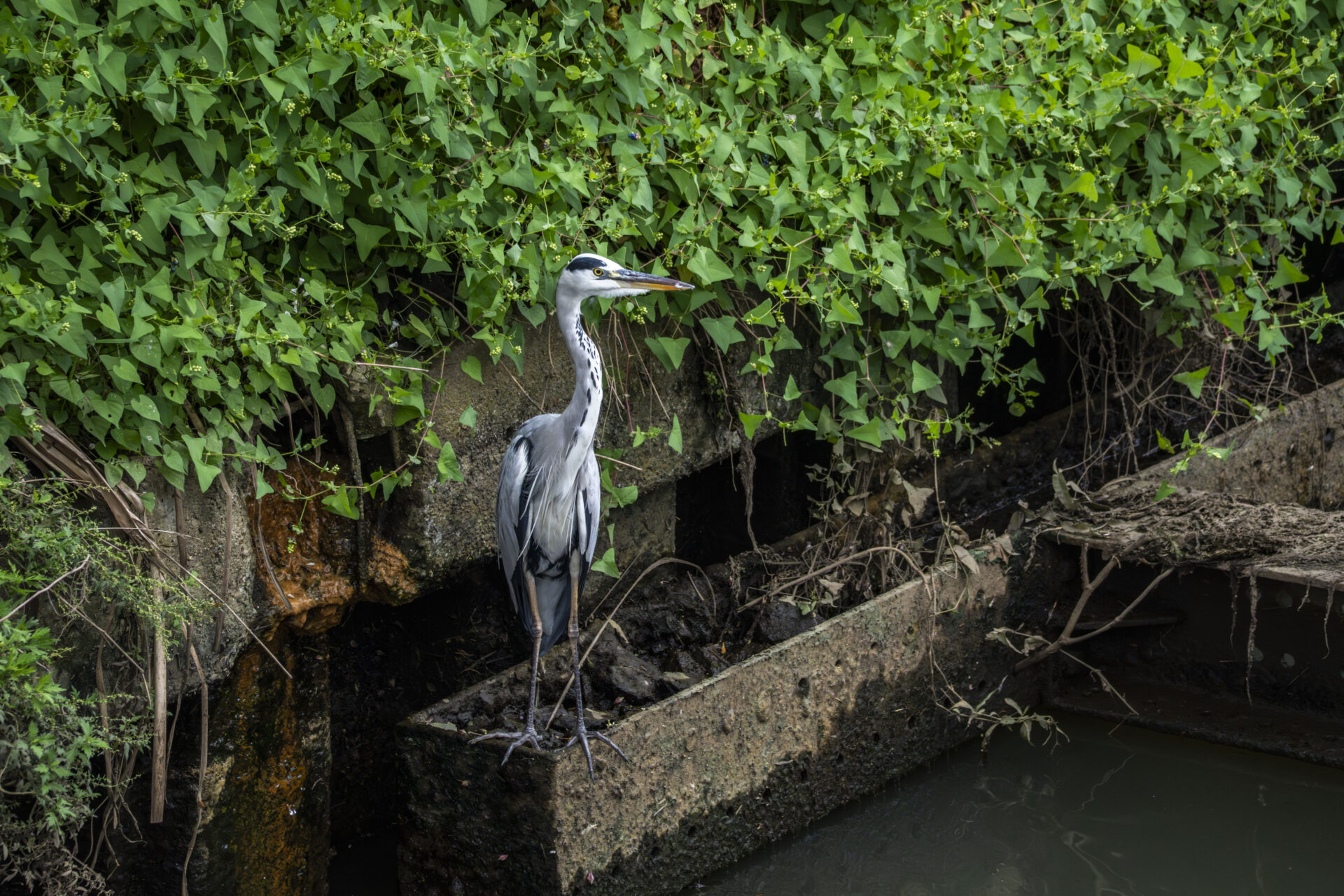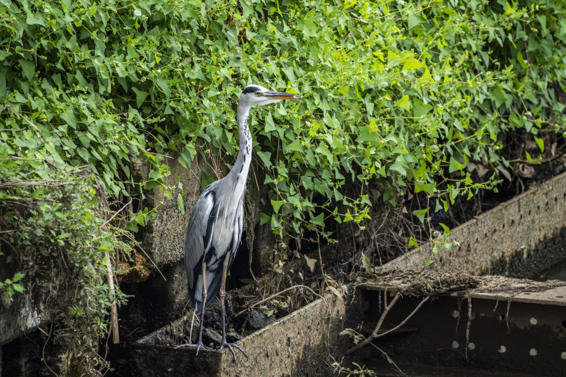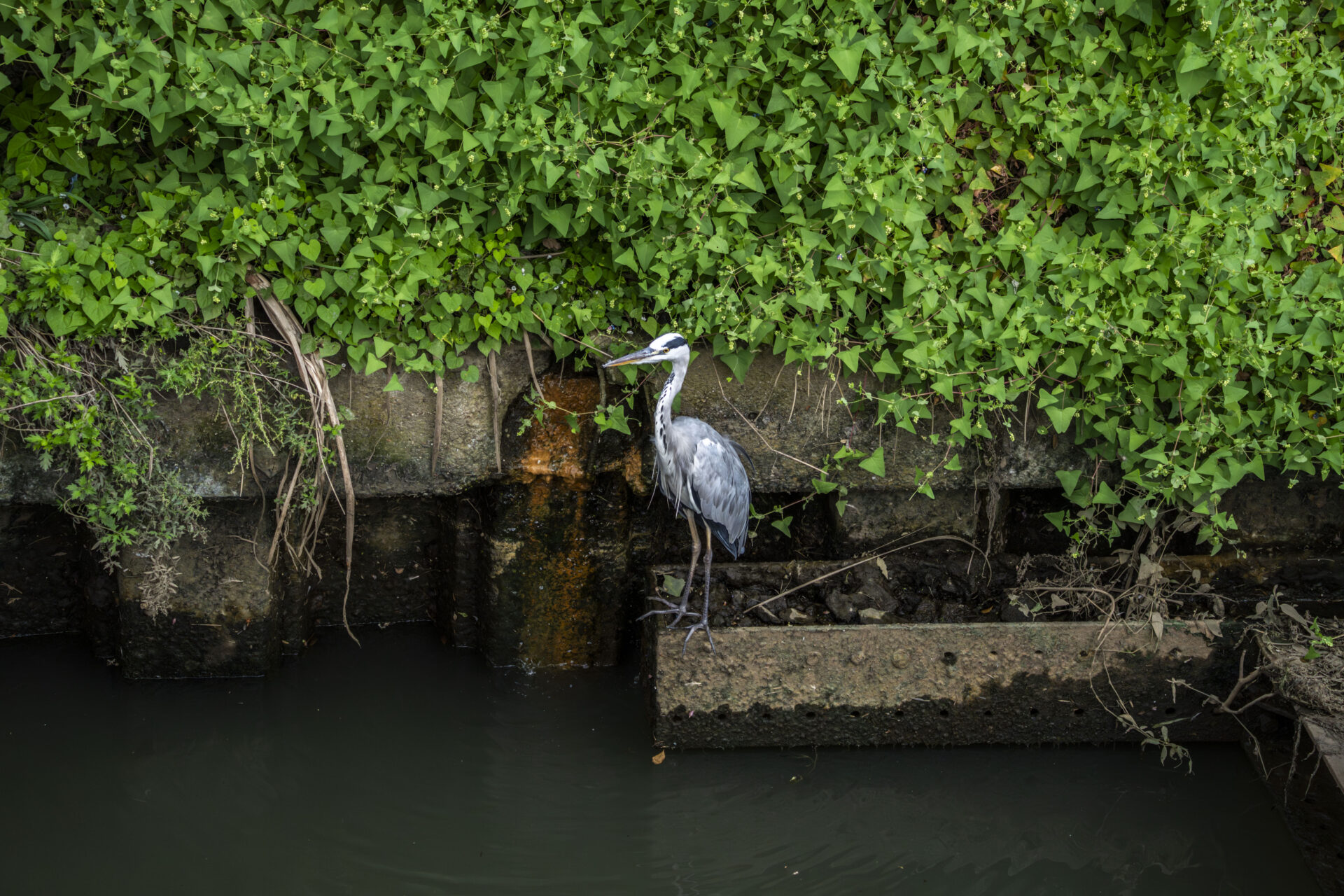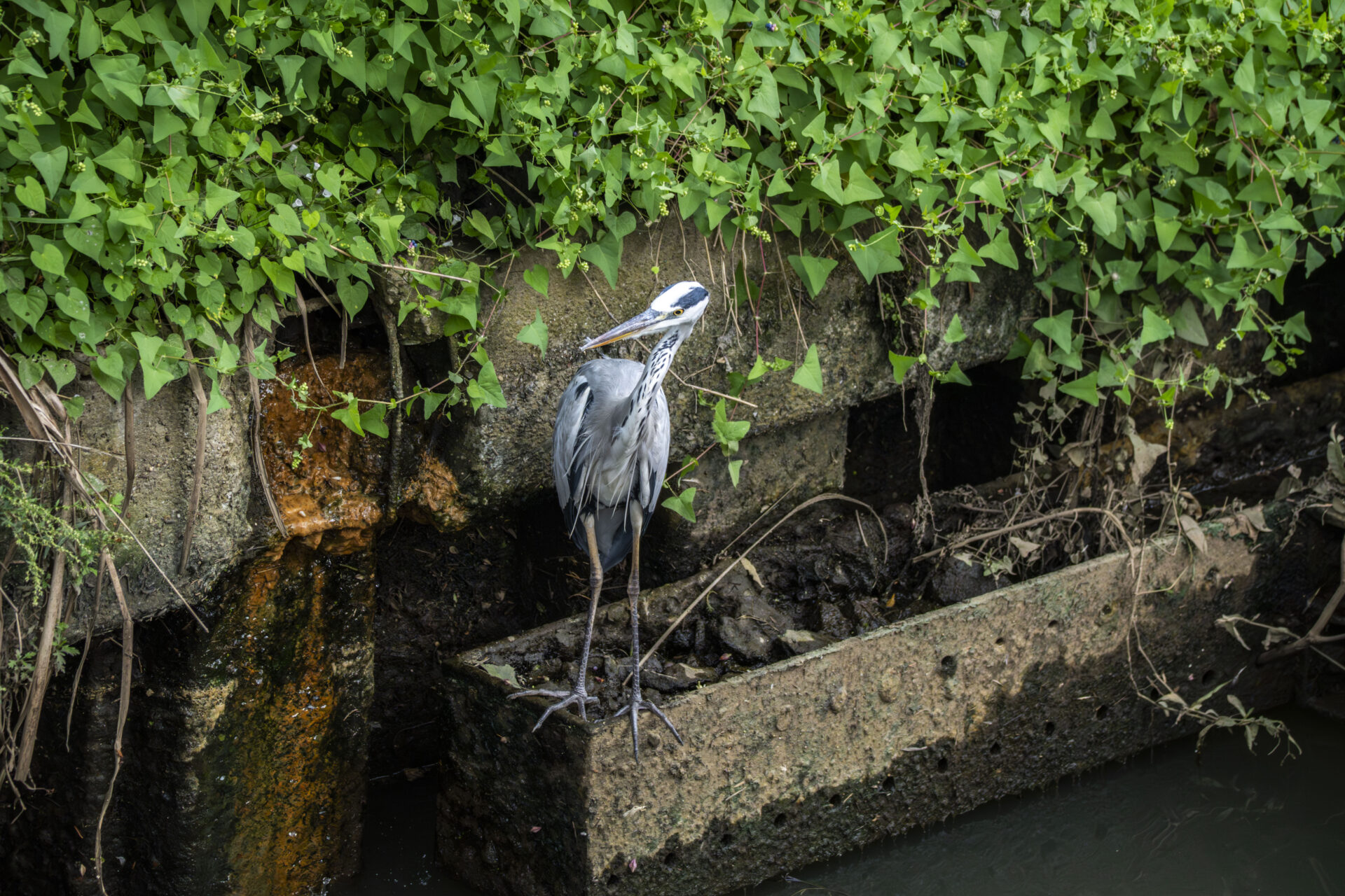 アオサギのおつまみ🦤がよくいた用水路ではちょくちょく別のアオサギが現れるようになった。生まれ変わり多くない?